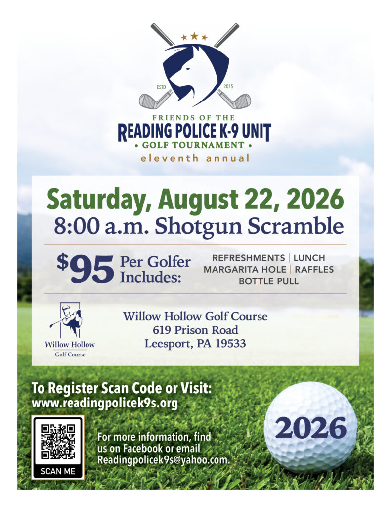 May 1, 2022, Reading, PA: The Friends of the Reading Police K9 Unit today announced the creation of the Reading Police Retired K-9 Fund, which is dedicated to the dogs who have protected our community and our officers.